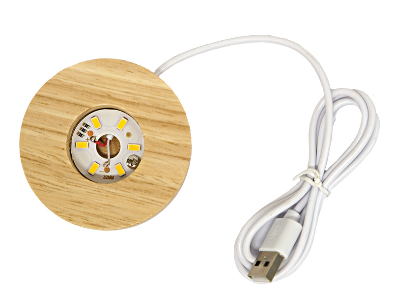 • gehalten durch einen Holzsockel in dem warmweiße LED's verbaut sind