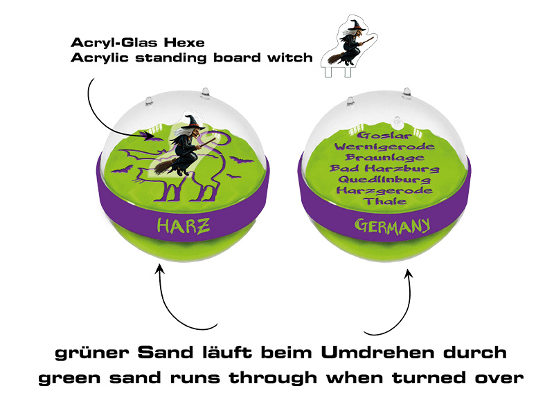 - the magic sand globe works on the basis of an hourglass: when turned over, the sand falls into the other half and the other side becomes visible.